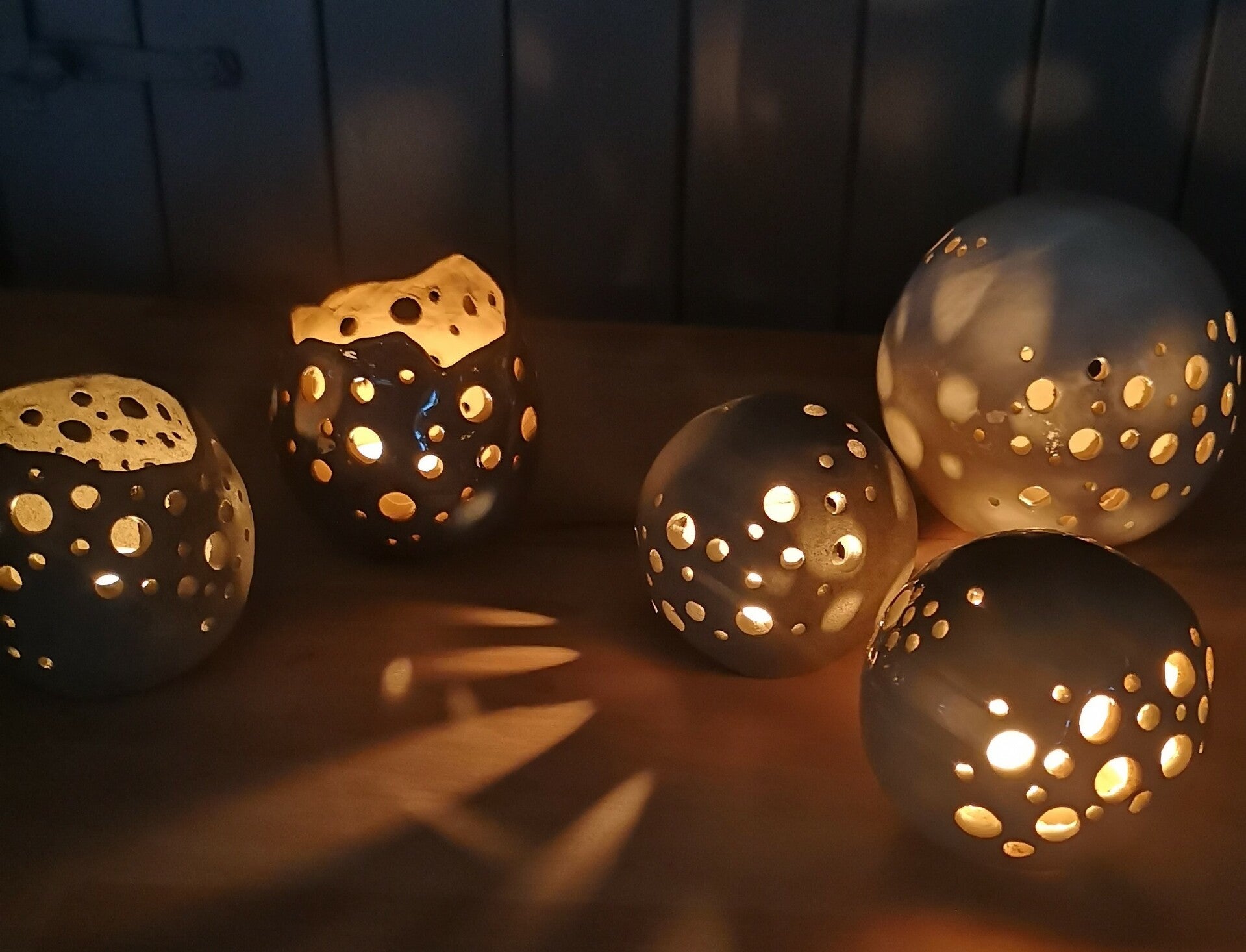 Met behulp van een malletje worden de theelichthouders gemaakt.
